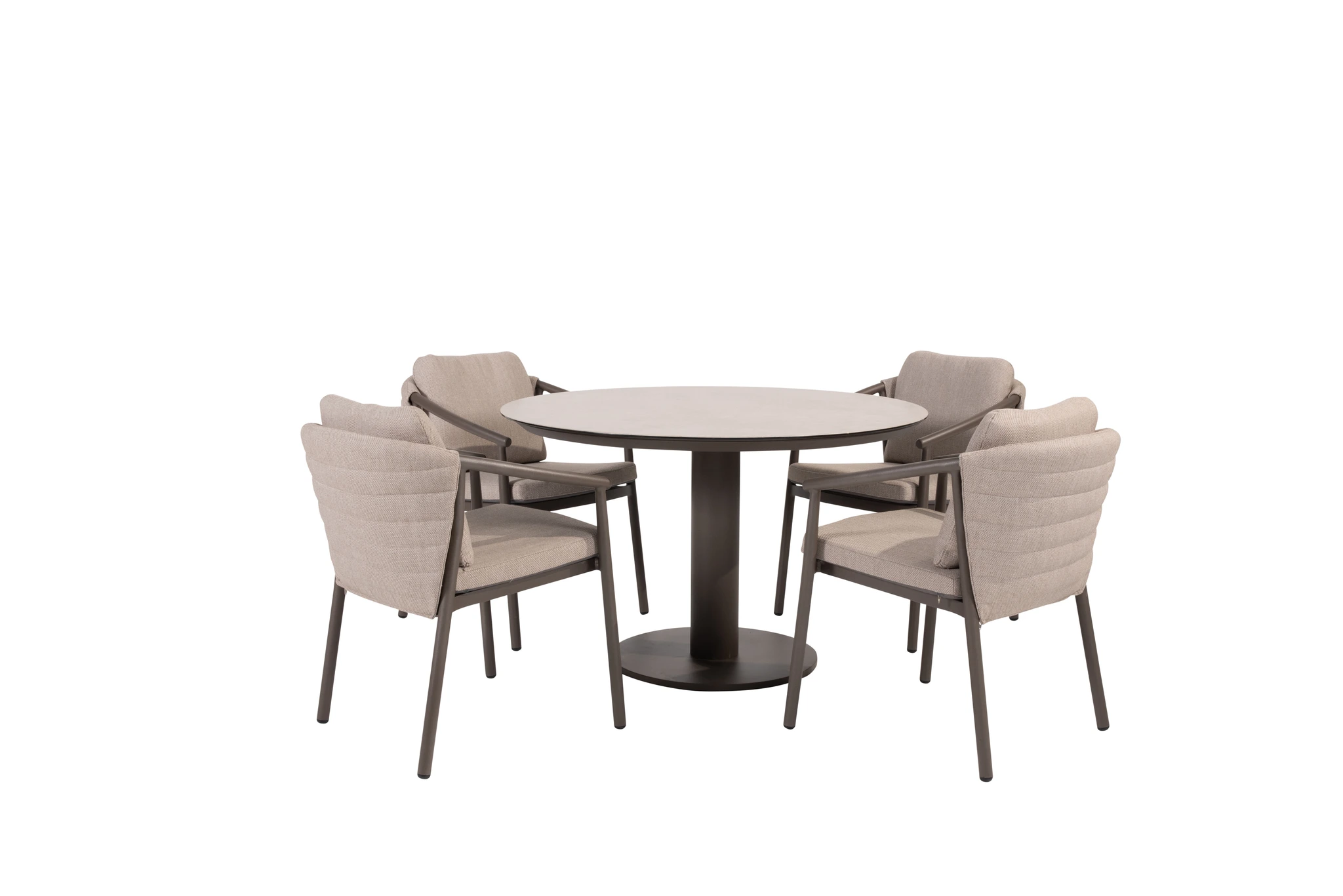 De Barolo ding set bestaat uit 4 x Barolo dining stoelen een een Sarah ding tafel (Ø 120 cm)