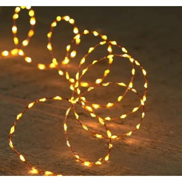 Koper draadverlichting met timer 330 LED lampjes 5 meter. Koperkleurige lichtdraad met 330 klassiek warm led lampjes IP44. De lichtcluster heeft een 8/16 uur timer met aan/uit functie en werkt op netstroom.