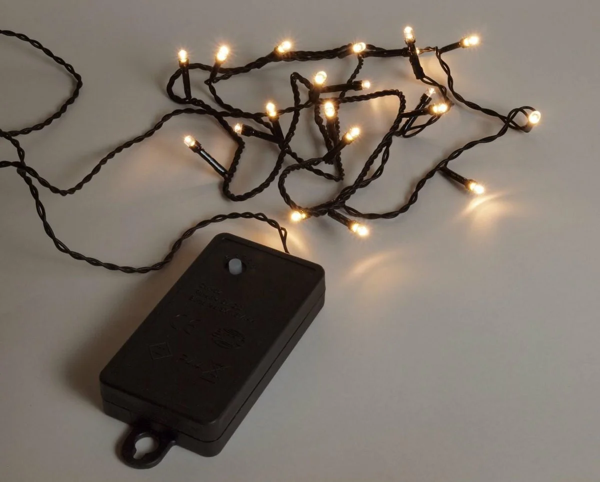 Deze batterij verlichting voor buitengebruik met 50led lampjes in de kleur classic warm de lengte van het snoer is 3,75m in de kleur zwart, de voeding is 3xaa baterijen en heeft een timer functie 6 uur aan en18 uur uit Ip44. Exclusief Batterijen.