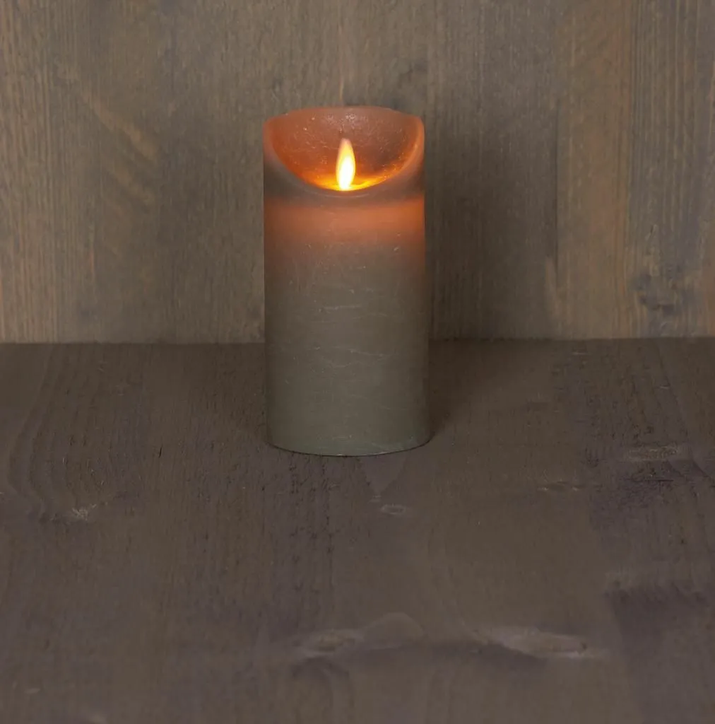 Deze taupe LED stompkaars met bewegende vlam met de maten H15 cm D7,5 cm. De ANNA"S Collection stompkaars heeft een bewegende vlam verlichting die de illusie geeft van echt kaarslicht. Deze kaars werkt op 3 AAA batterijen (niet inbegrepen) en de schakelaar heeft drie standen continu aan, continu uit en timer functie 6 uur aan en 18 uur uit. Deze kaars is uitsluitend bedoeld voor het gebruik binnenshuis.