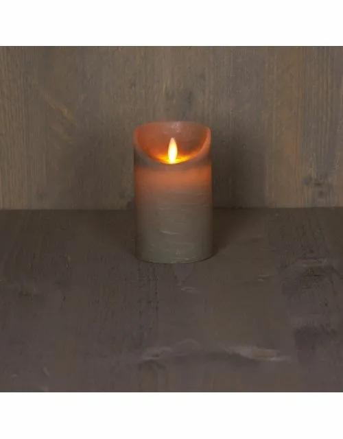 Deze taupe LED stompkaars met bewegende vlam met de maten H12,5 cm D7,5 cm. De ANNA"S Collection stompkaars heeft een bewegende vlam verlichting die de illusie geeft van echt kaarslicht. Deze kaars werkt op 3 AAA batterijen (niet inbegrepen) en de schakelaar heeft drie standen continu aan, continu uit en timer functie 6 uur aan en 18 uur uit. Deze kaars is uitsluitend bedoeld voor het gebruik binnenshuis.