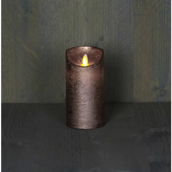 LED wax stompkaars in de kleur brons. De kaars is gemaakt van wax, wat zorgt voor een realistische uitstraling en een aangename textuur. Met een hoogte van 15 cm en een breedte van 7,5 cm past deze kaars perfect in verschillende interieurstijlen. De gebruiksvriendelijke timerfunctie stelt je in staat om de kaars automatisch aan en uit te laten gaan. De bewegende vlam geeft een levensecht effect, waardoor je de gezelligheid van een brandende kaars ervaart zonder de zorgen van open vuur. De stompkaars werkt op 3 AAA batterijen (niet inbegrepen), waardoor je geniet van een langdurige en veilige verlichting zonder gedoe met stopcontacten. LET OP! Vanwege de authentieke samenstelling van echt wax zijn deze led kaarsen gevoelig voor hitte. Plaats de kaarsen daarom niet in direct zonlicht of in de buurt van verwarmingselementen om de kwaliteit te behouden.