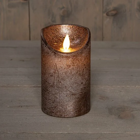 LED wax stompkaars in de kleur brons. De kaars is gemaakt van wax, wat zorgt voor een realistische uitstraling en een aangename textuur. Met een hoogte van 12.5 cm en een breedte van 7,5 cm past deze kaars perfect in verschillende interieurstijlen. De gebruiksvriendelijke timerfunctie stelt je in staat om de kaars automatisch aan en uit te laten gaan. De bewegende vlam geeft een levensecht effect, waardoor je de gezelligheid van een brandende kaars ervaart zonder de zorgen van open vuur. De stompkaars werkt op 3 AAA batterijen (niet inbegrepen), waardoor je geniet van een langdurige en veilige verlichting zonder gedoe met stopcontacten. LET OP! Vanwege de authentieke samenstelling van echt wax zijn deze led kaarsen gevoelig voor hitte. Plaats de kaarsen daarom niet in direct zonlicht of in de buurt van verwarmingselementen om de kwaliteit te behouden.