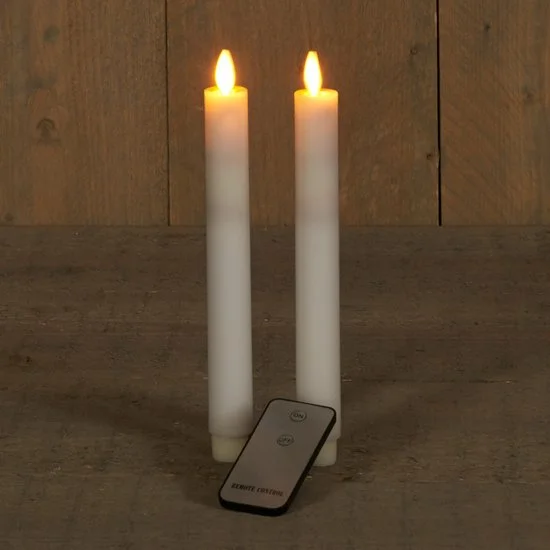 LED dinerkaarsen 2x stuks van 23 cm. Voeg een vleugje luxe toe aan je diner met deze set van 2x stuks dinerkaarsen in de kleur wit. Met een hoogte van 23 cm en LED bewegende vlam, zorg je voor een warme en elegante sfeer. Gemakkelijk te bedienen met de meegeleverde afstandsbediening, inclusief dimmer en timer functie. 2 AA batterijen per kaars worden niet meegeleverd. Laat de betovering van kaarslicht zonder zorgen om open vuur je tafel verfraaien met deze stijlvolle LED dinerkaarsen.