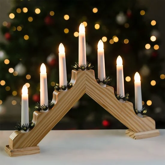 Deze ongelakte grenen kandelaar van Konstsmide is geschikt voor binnenshuis gebruik en brengt de echte kerstsfeer in het interieur. De kaarsen geven een mooie warmte lichtverpreiding en zijn voorzien van een (groen) decoratiering. Zet deze sfeermaker in de vensterbank, raamkozijn, op tafel of dressoir of geef hem een plaatsje in een open kast.