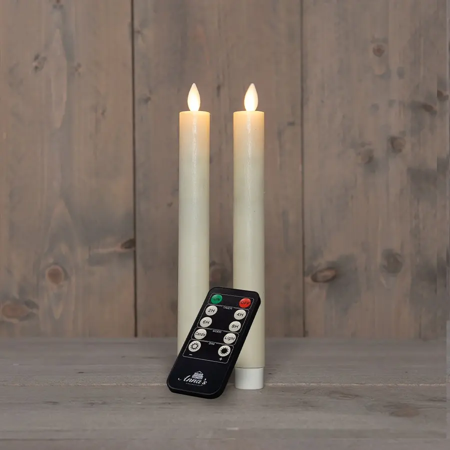 Anna's Collection LED dinerkaarsen op tafel voegen extra sfeer toe. Deze USB-oplaadbare kaarsen combineren de klassieke charme van echte vlammen met moderne technologie. Dankzij de realistische, bewegende vlam geniet je van een gezellige, flikkerende gloed — zó natuurgetrouw, dat je nauwelijks het verschil ziet. Geen rook, geen vuur, geen zorgen. Perfect voor gezinnen met kinderen of huisdieren. Geen batterijen nodig. Eén keer ca. 4 uur opladen en daarna ca. 30 uur lang genieten van warme kaarsverlichting. Inclusief: USB kabel en afstand bediening. Uitsluiten te gebruiken binnenshuis.
