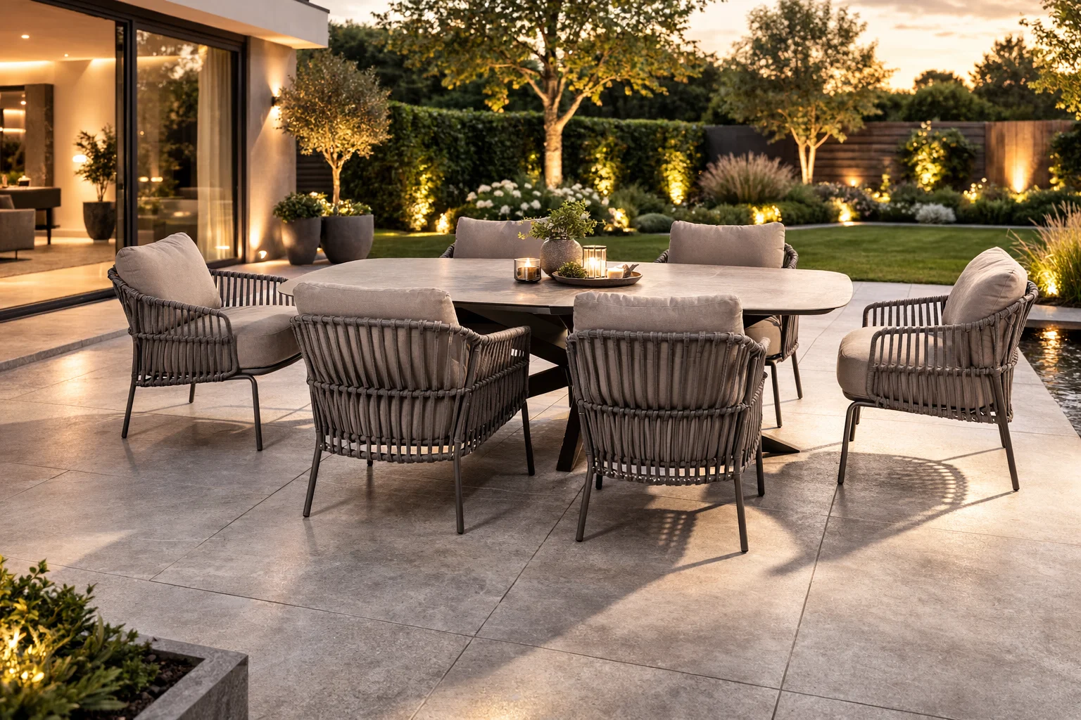 Ruim terras? Overweeg een royale loungeset met lage tafel.